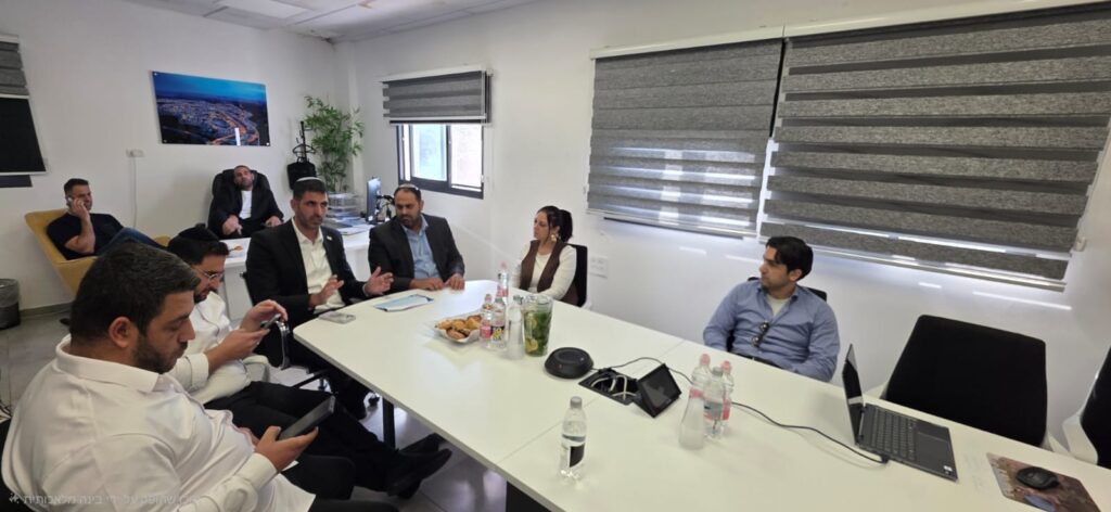 ישיבת העבודה בעירייה בהשתתפות שר התקשורת שלמה קרעי, רה"ע בפועל יוחאי פרג'י וסגנית ומ"מ רה"ע רויטל גונן